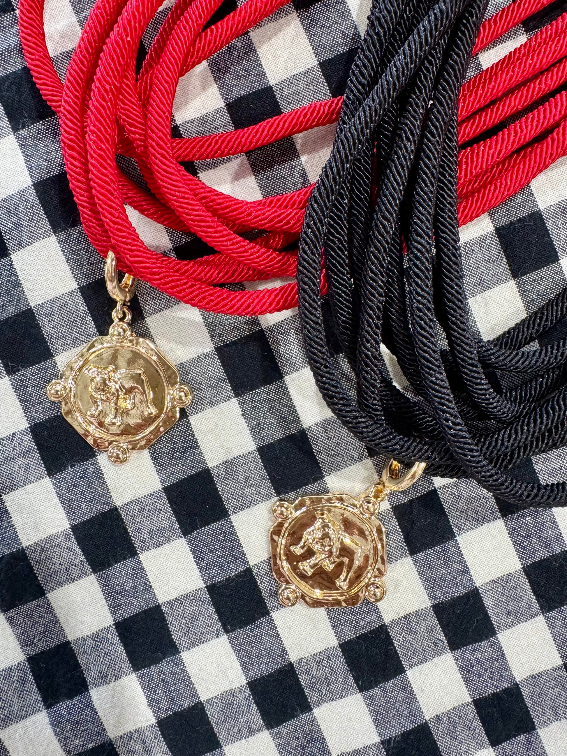 So cute! Multi strand rope necklace black with gold charm bulldog medallion