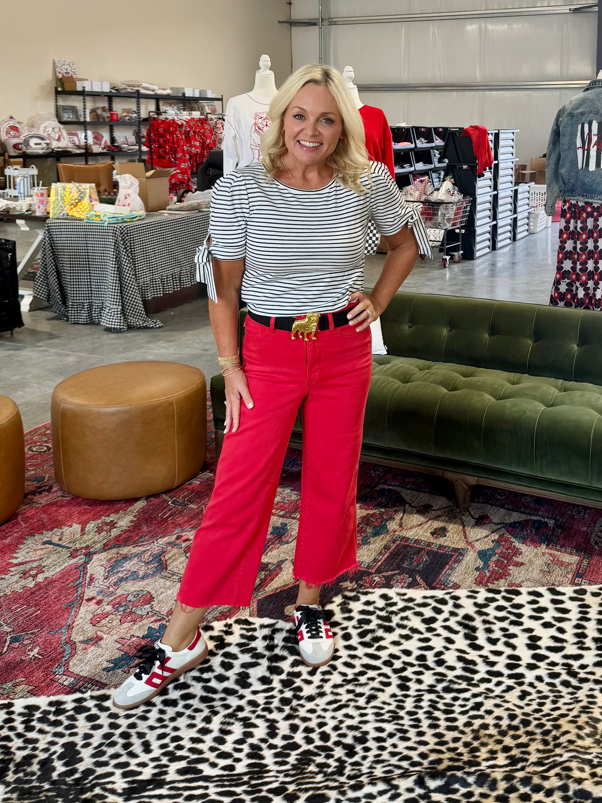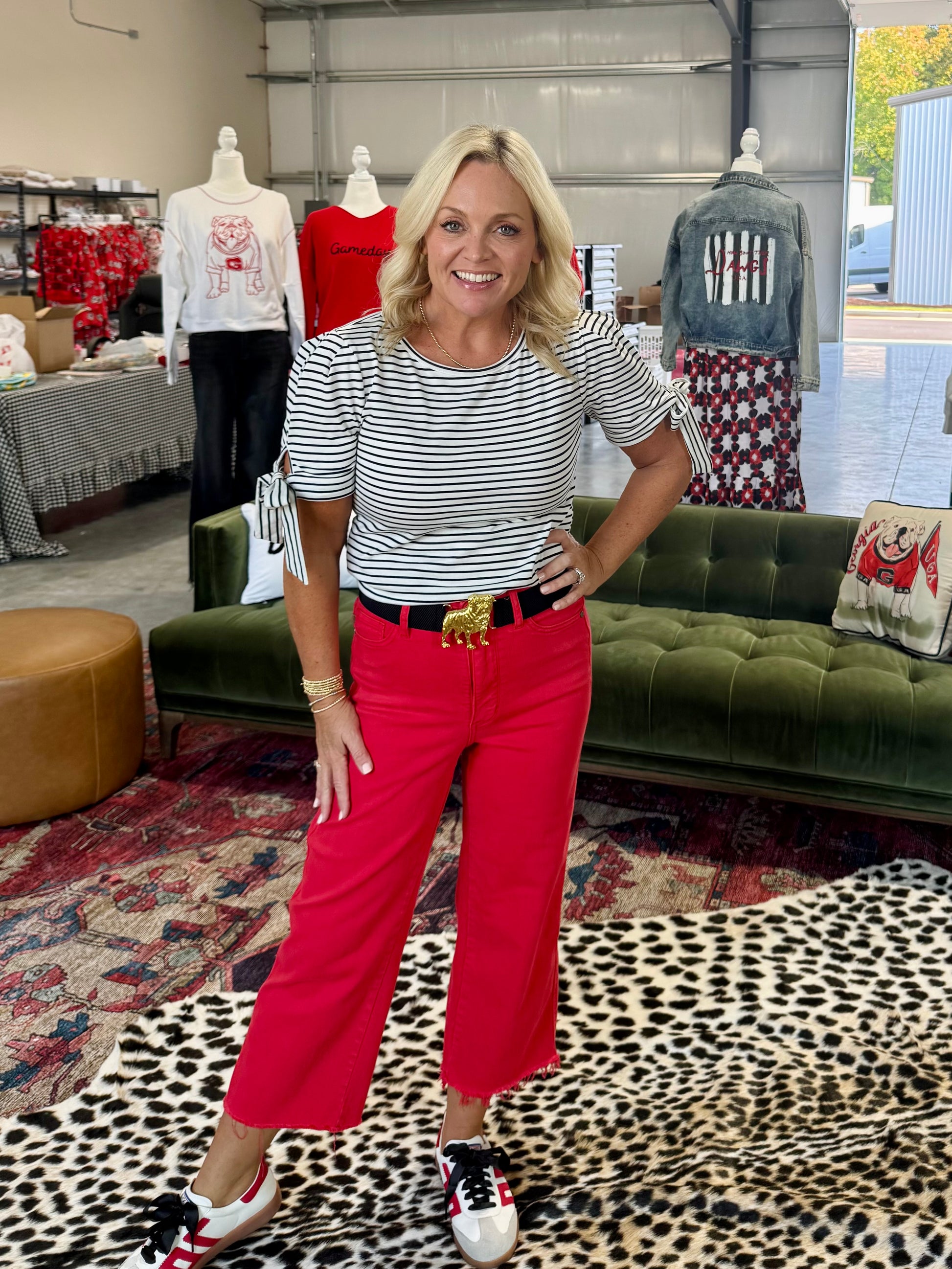Interchangeable stretchy black belt. wear by itself or get the bulldog buckle in my shop!