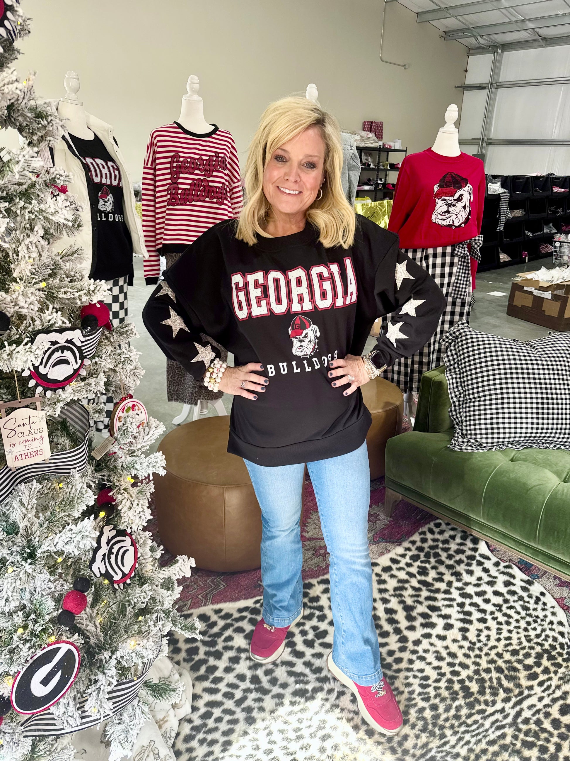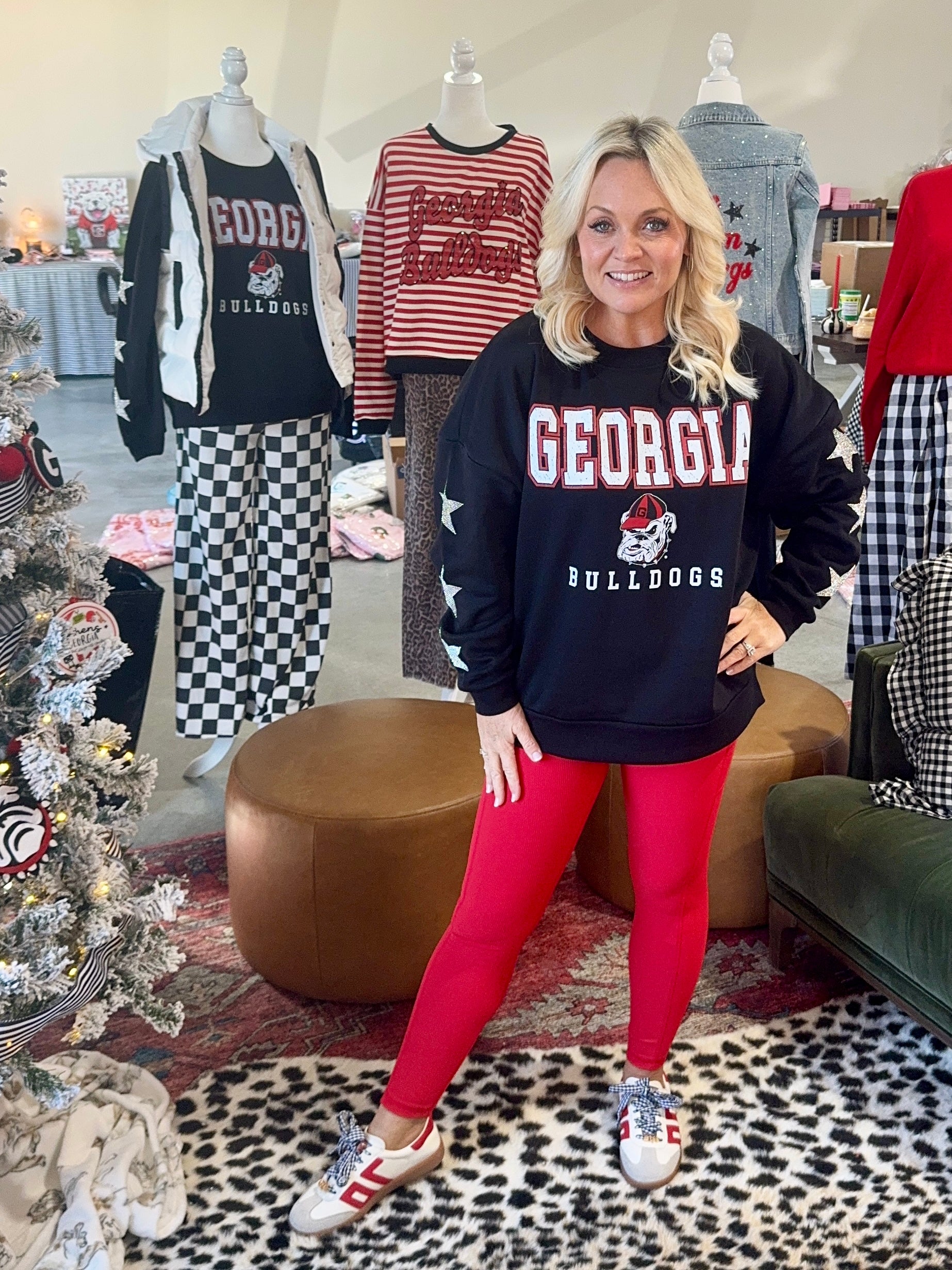 my sis and I both have size small on. This runs big. So just depends on how u want it to fit! Love this fit! Looks cute with just about any pants you pair it with!