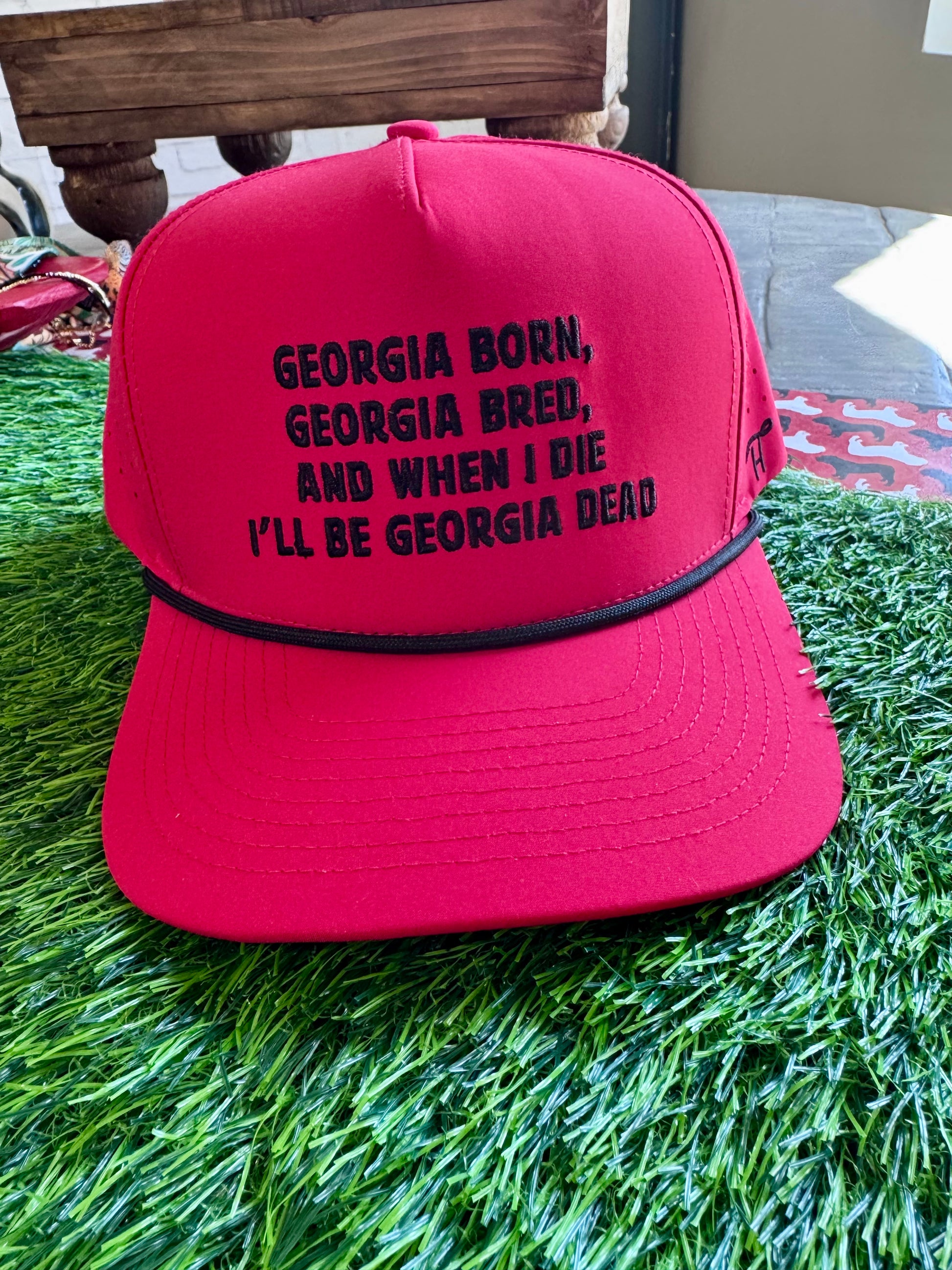 The coolest hat! Red with black rope and black embroidery. Adjustable