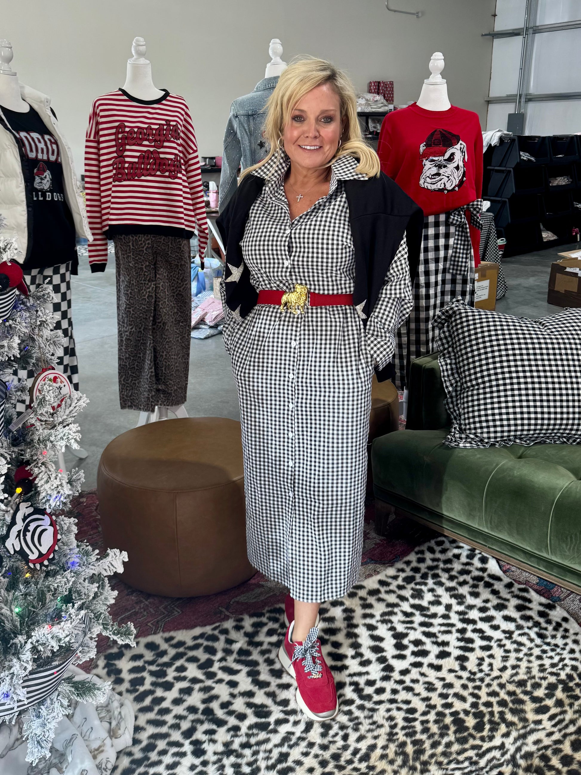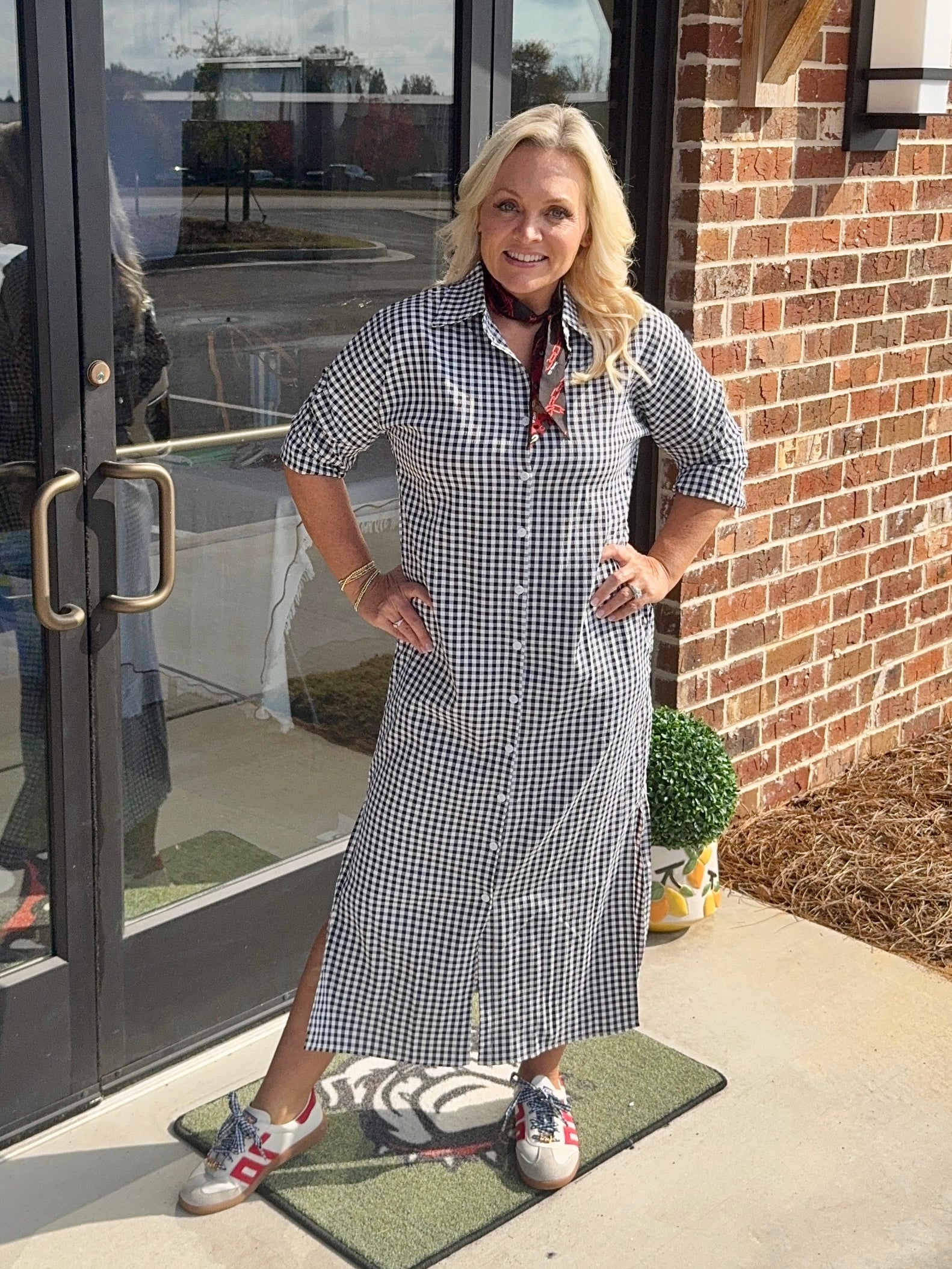 Easy breezy light weight gingham black and white shirt dress. With pockets! This is soo comfy! Love it so much!