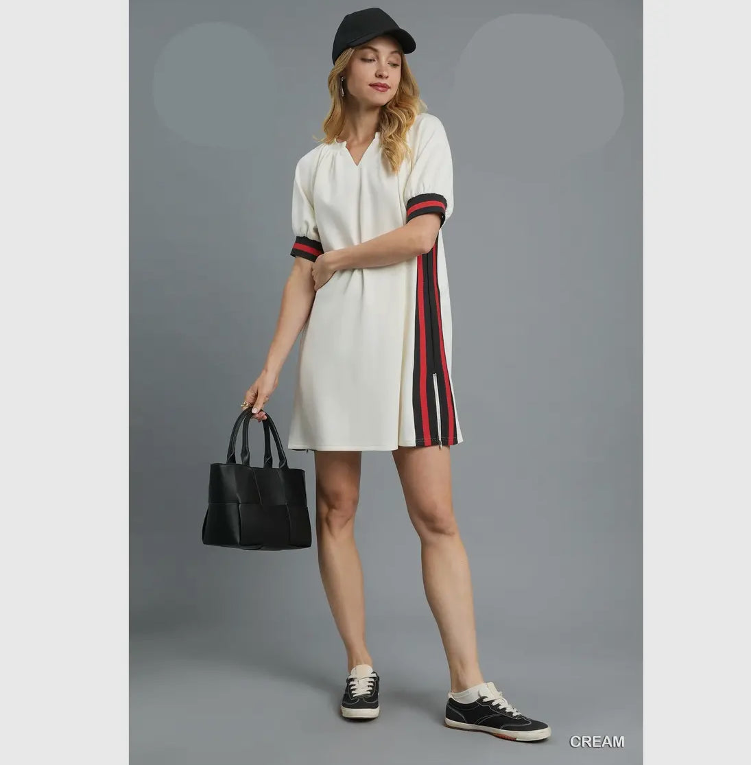New cream knit dress with stripes