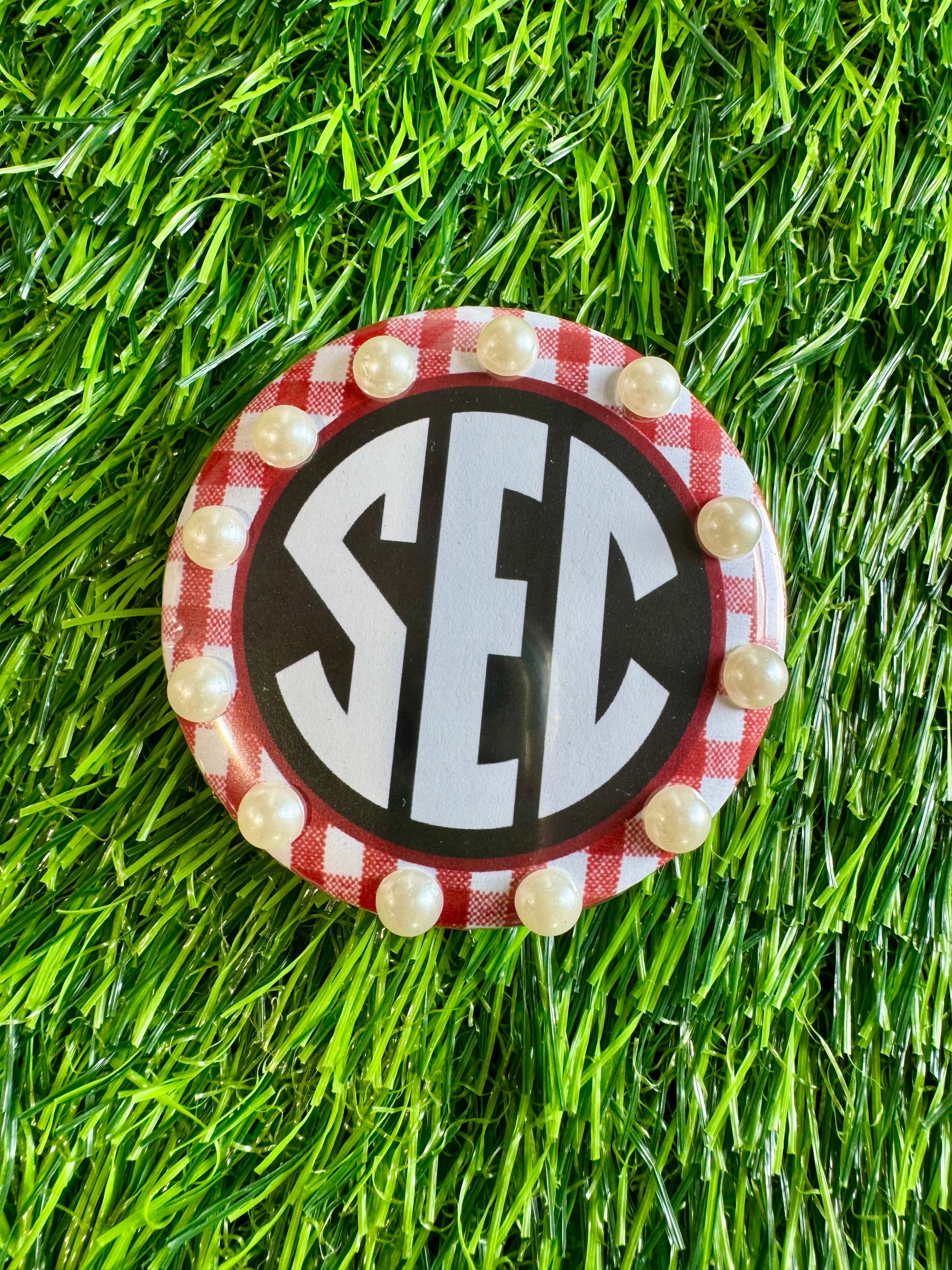 Soo cute! Pearls around a SEC button! Yay! So southern