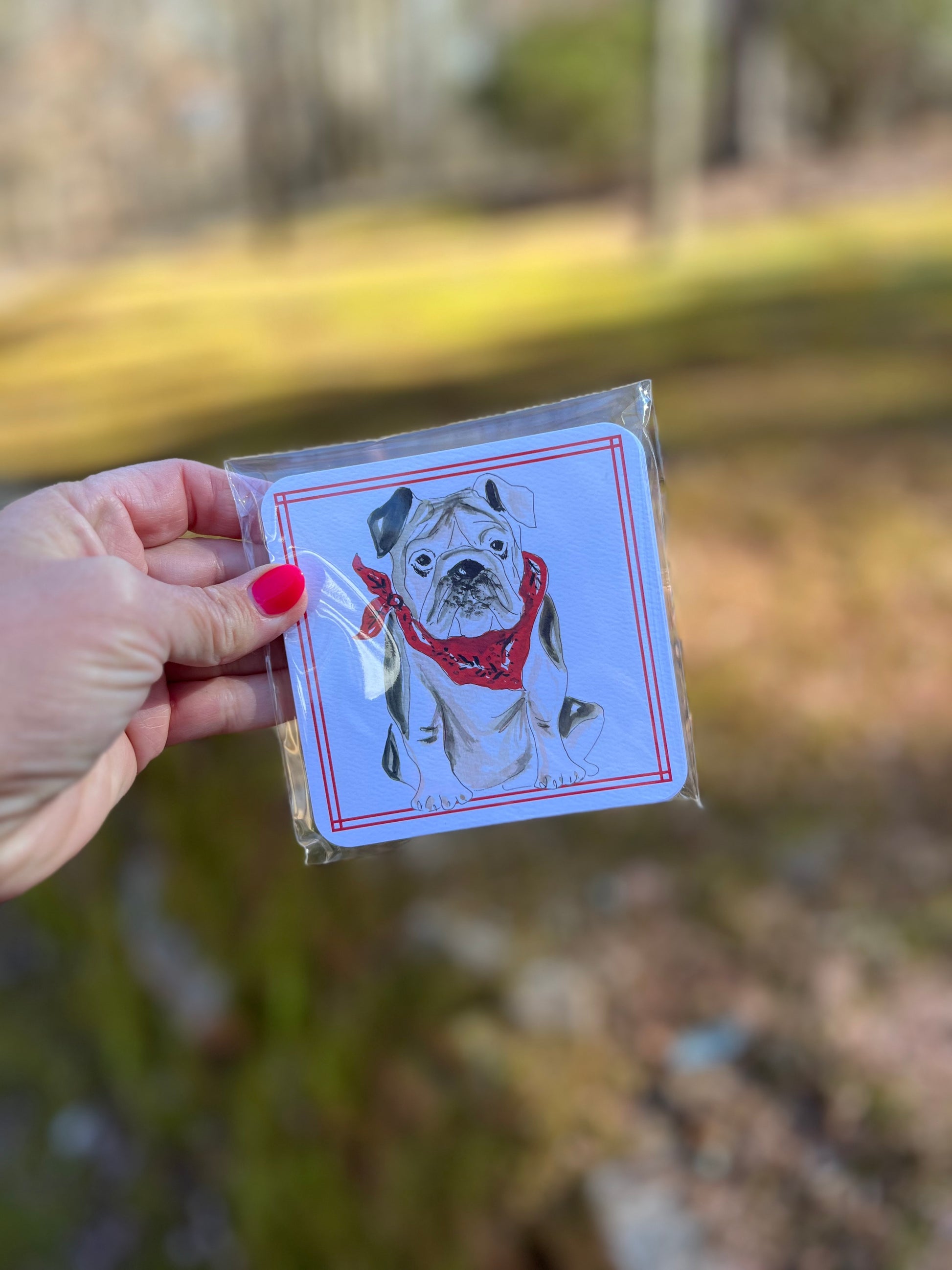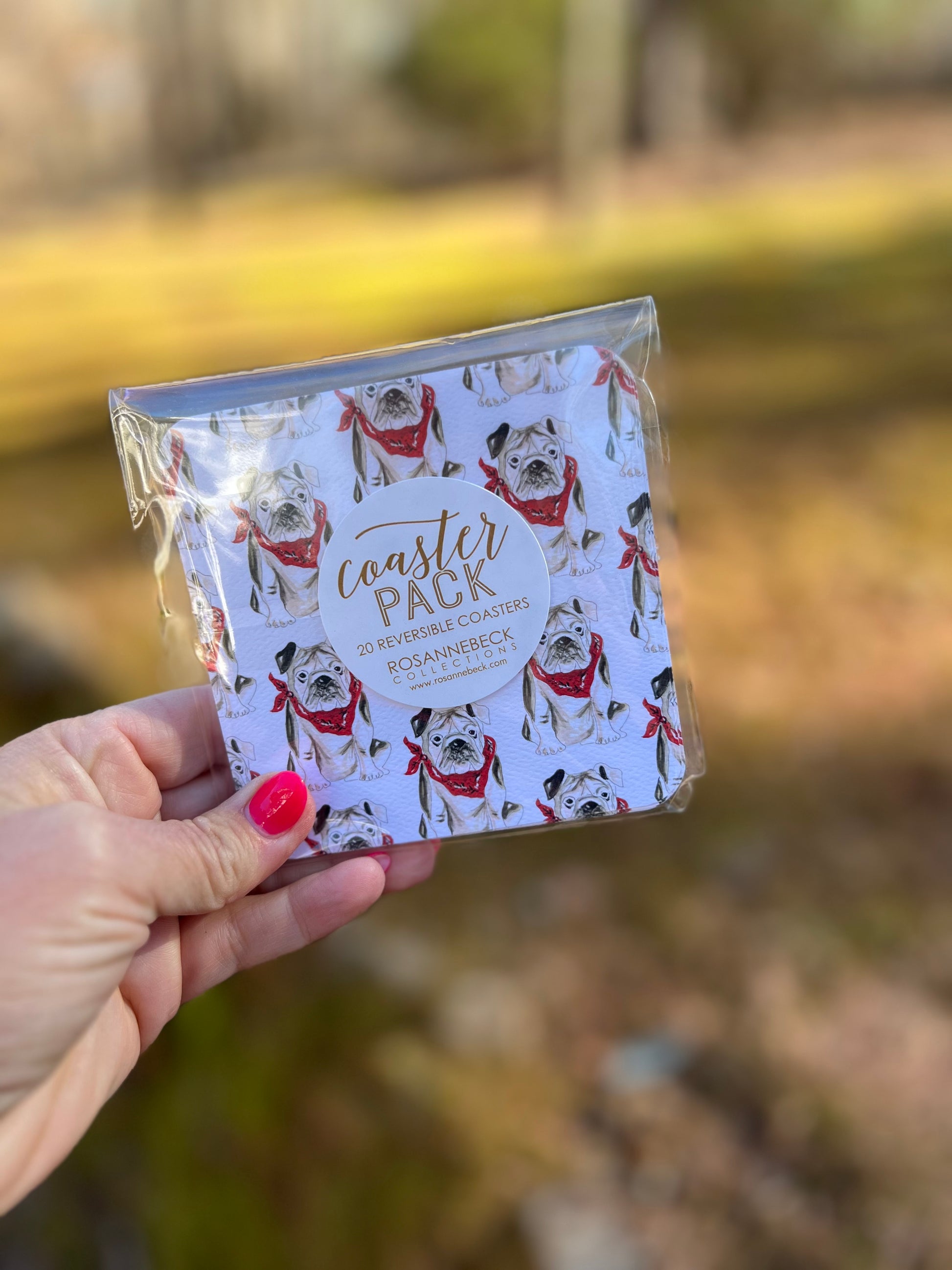Each coaster has a reversible cordinating pattern on the reverse side. Set of 20 coasters.