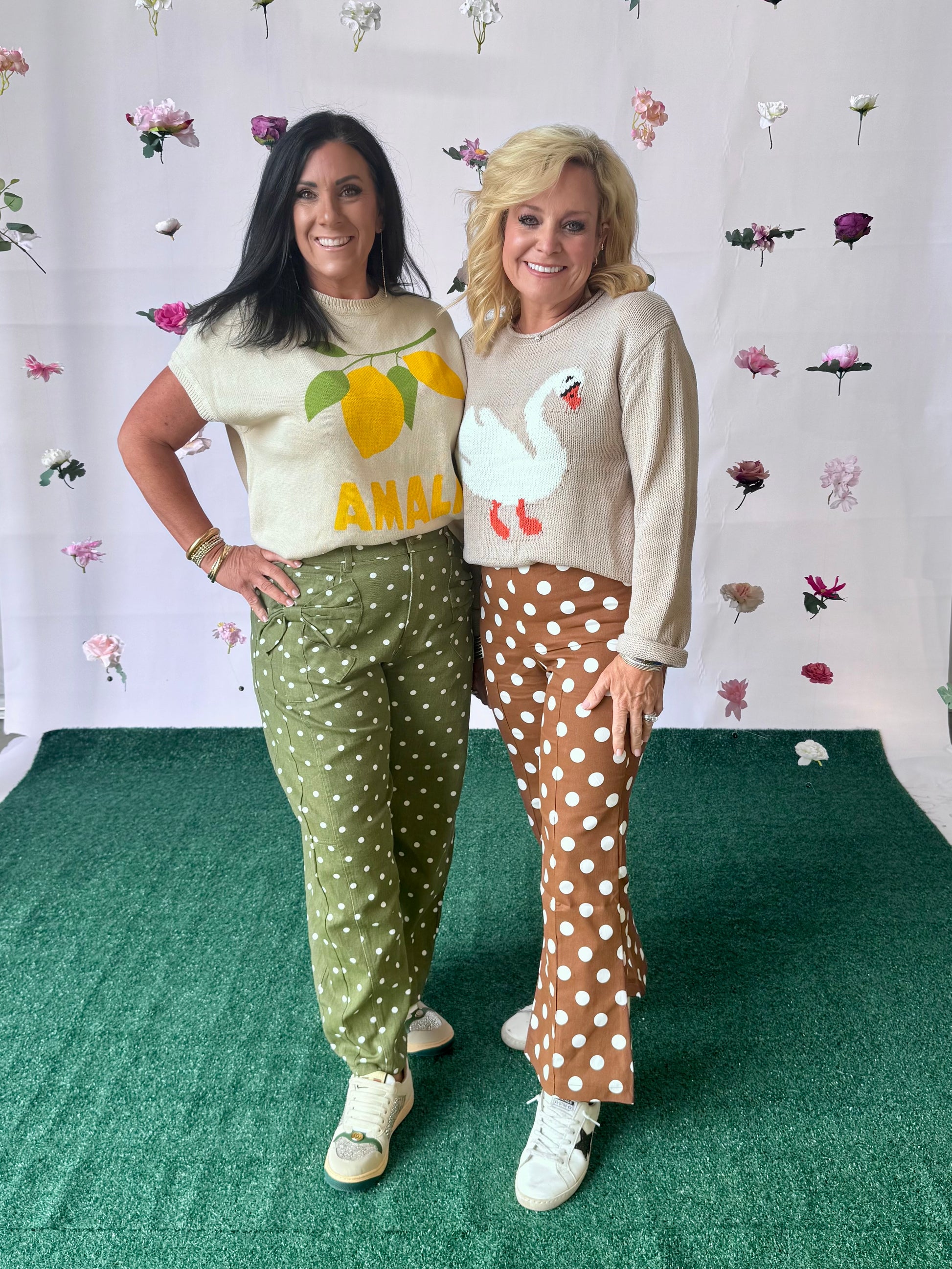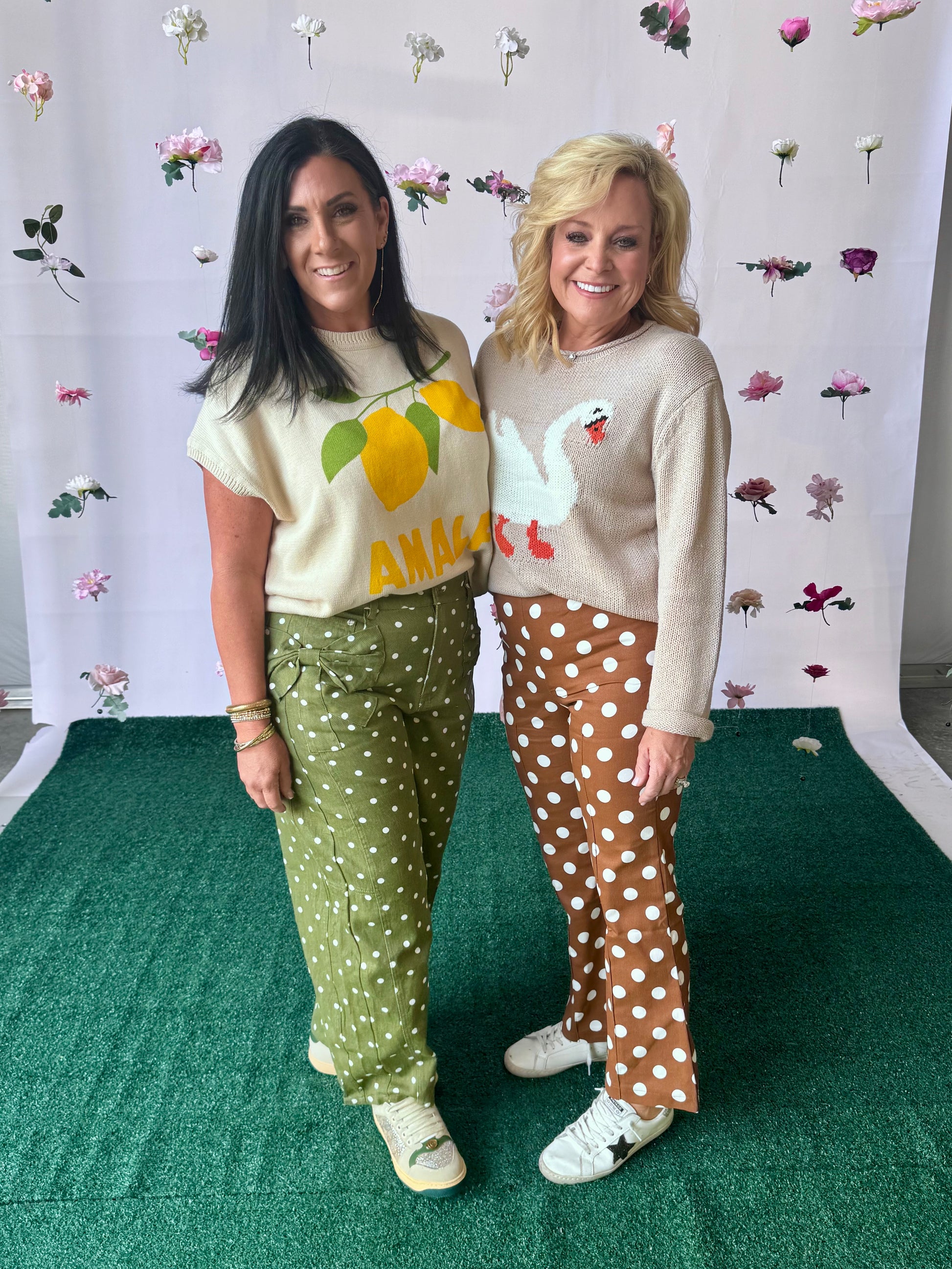 The cutest swan sweater ever! Light weight beige with white swan. Looks so cute with so much!