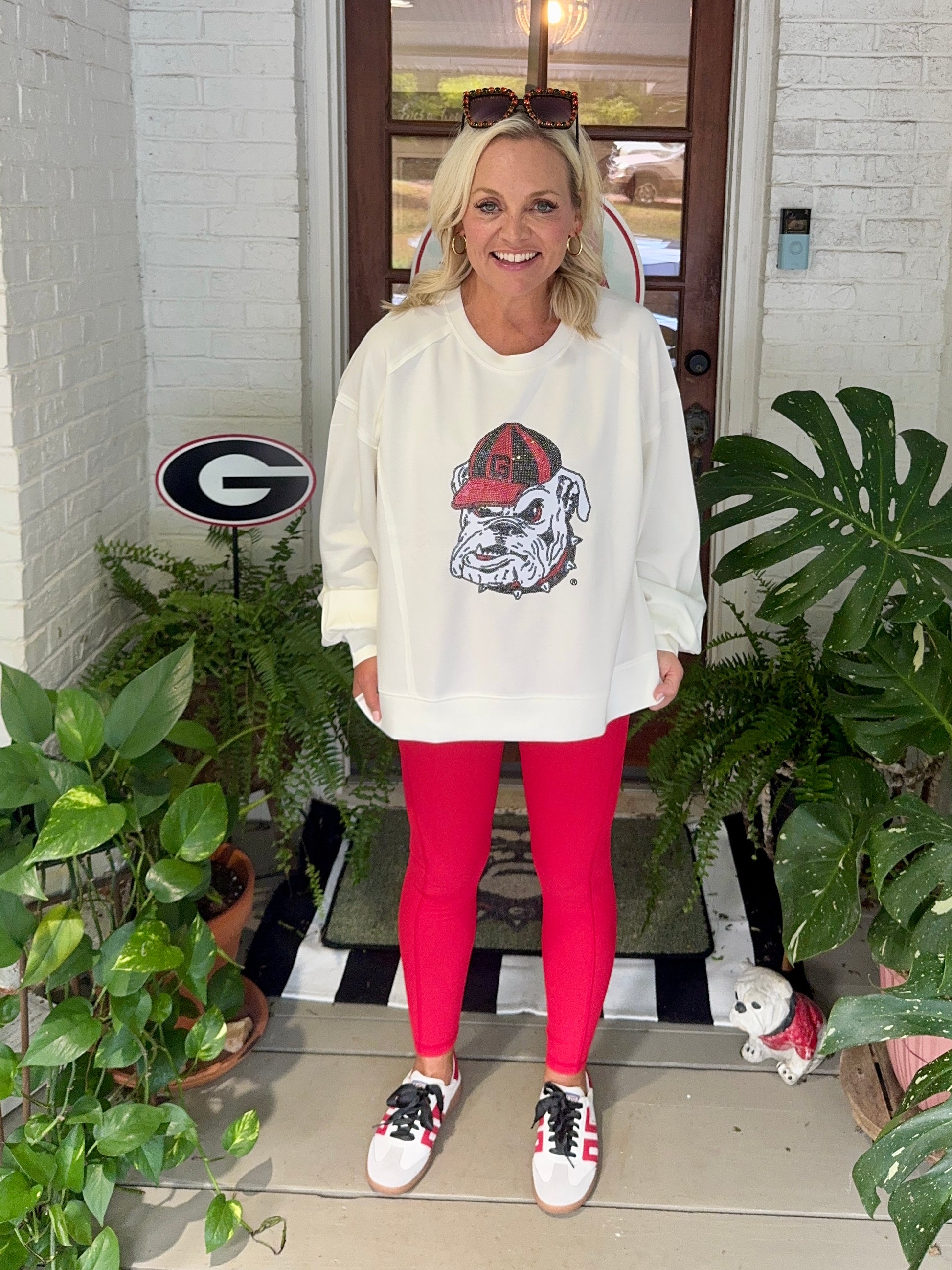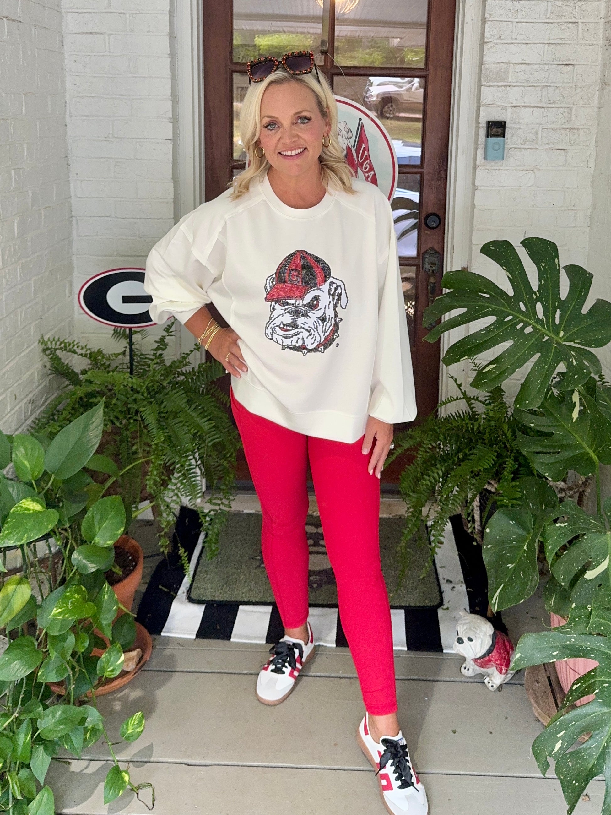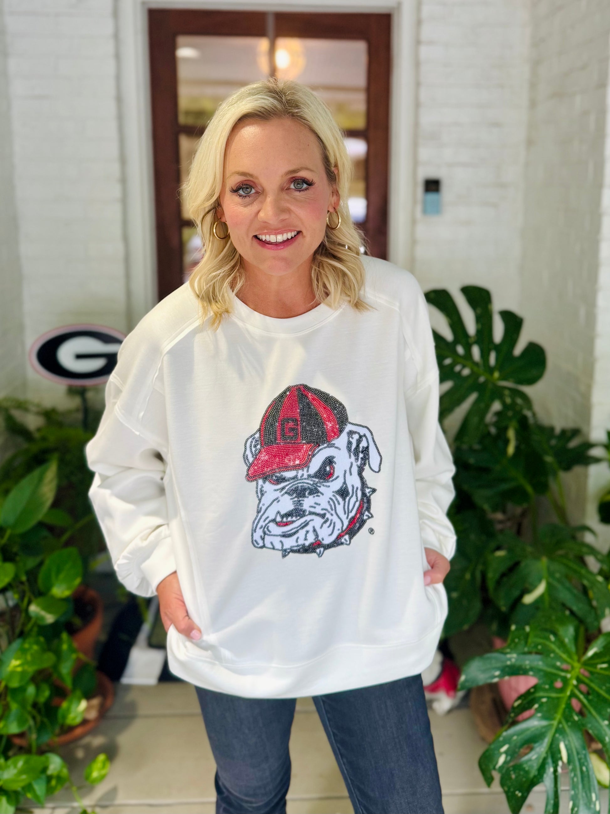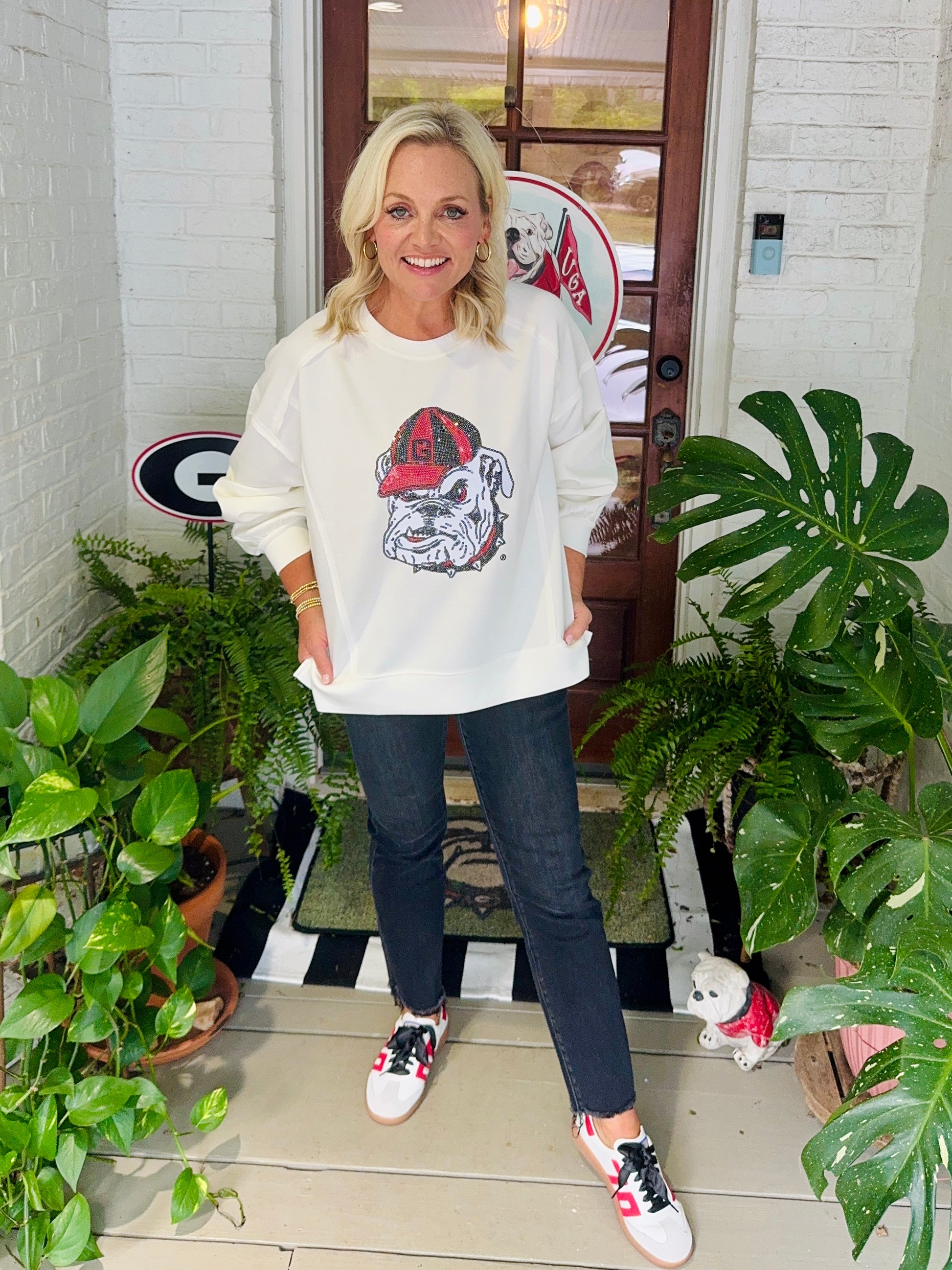 Oversized Sweatshirt scuba active wear top with licensed bulldog sequin up to 2X