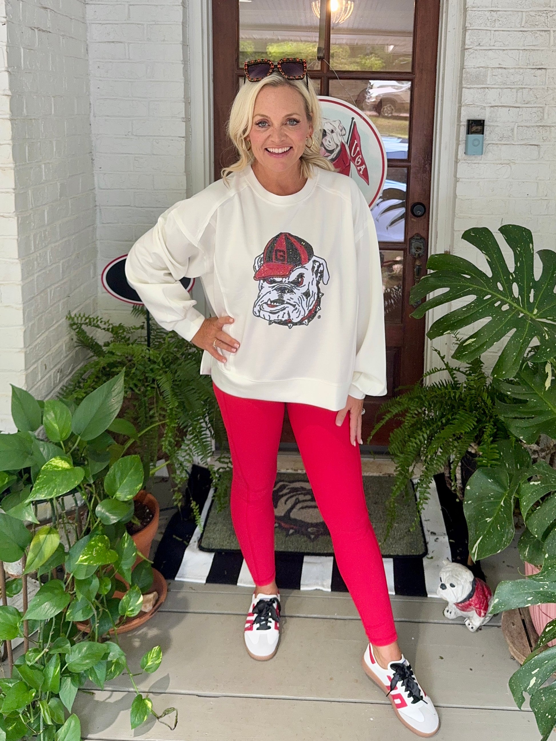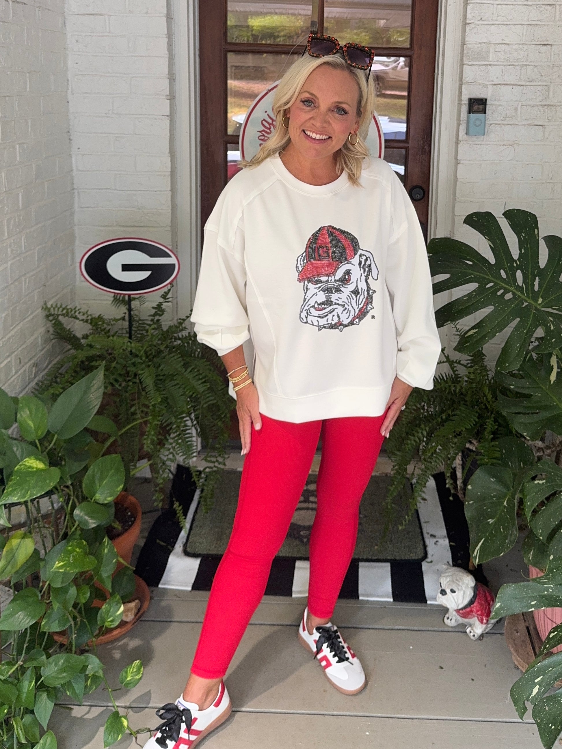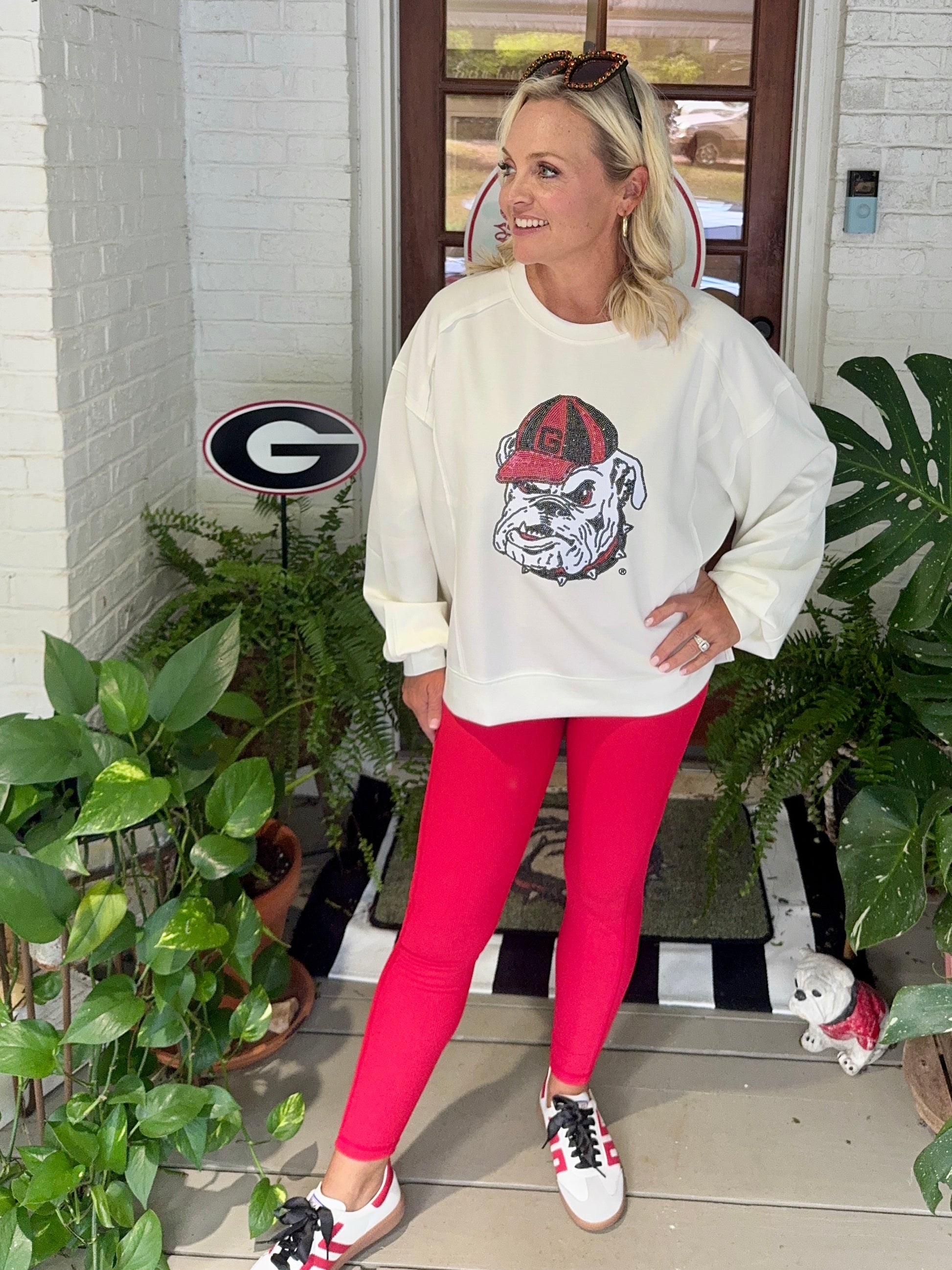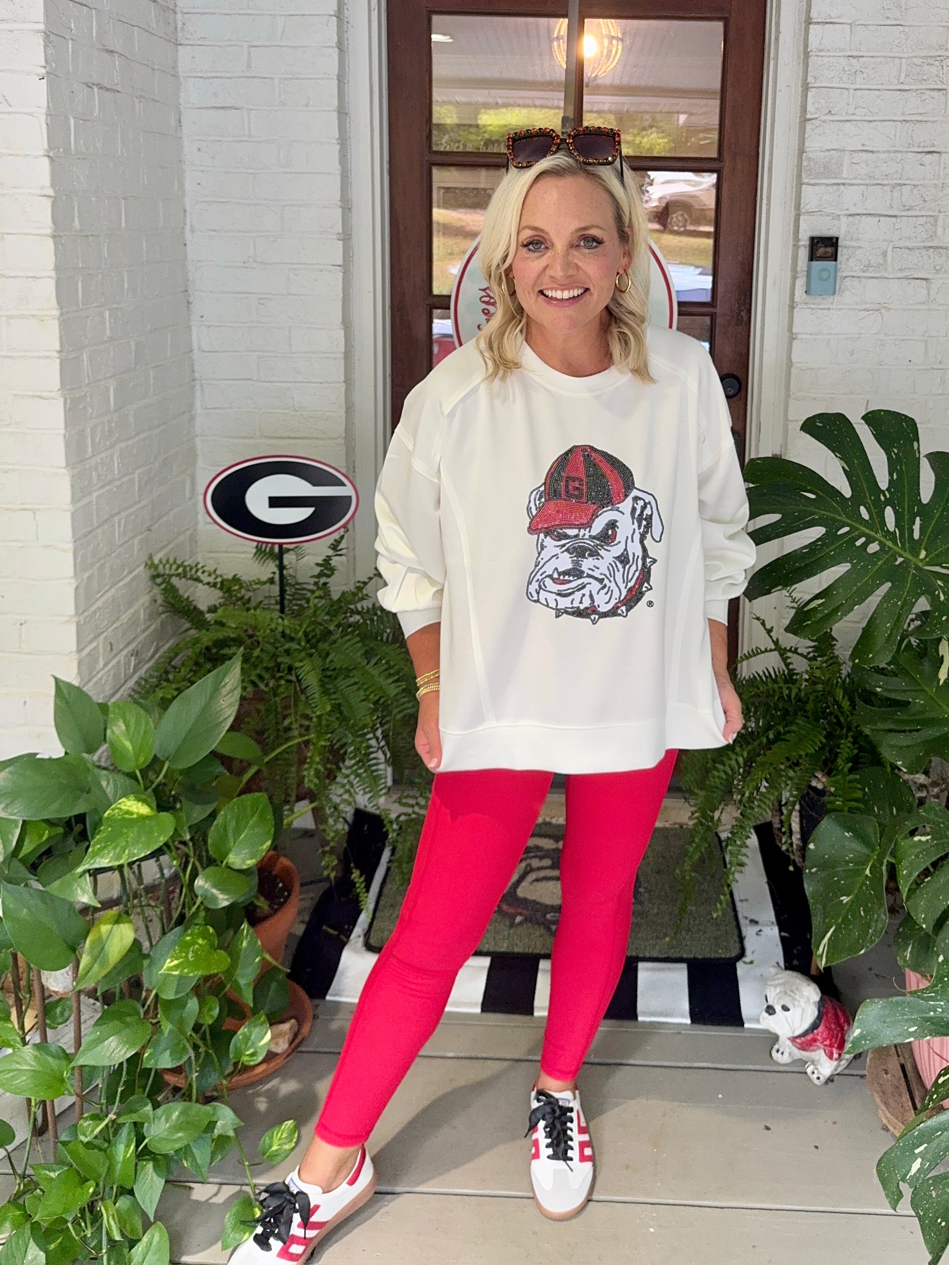 Oversized Sweatshirt scuba active wear top with licensed bulldog sequin up to 2X