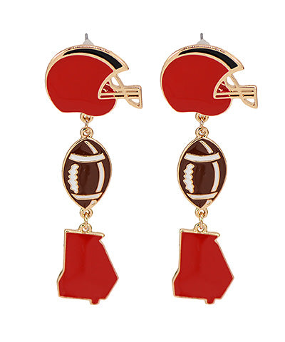 Metal dangle earrings black and red football