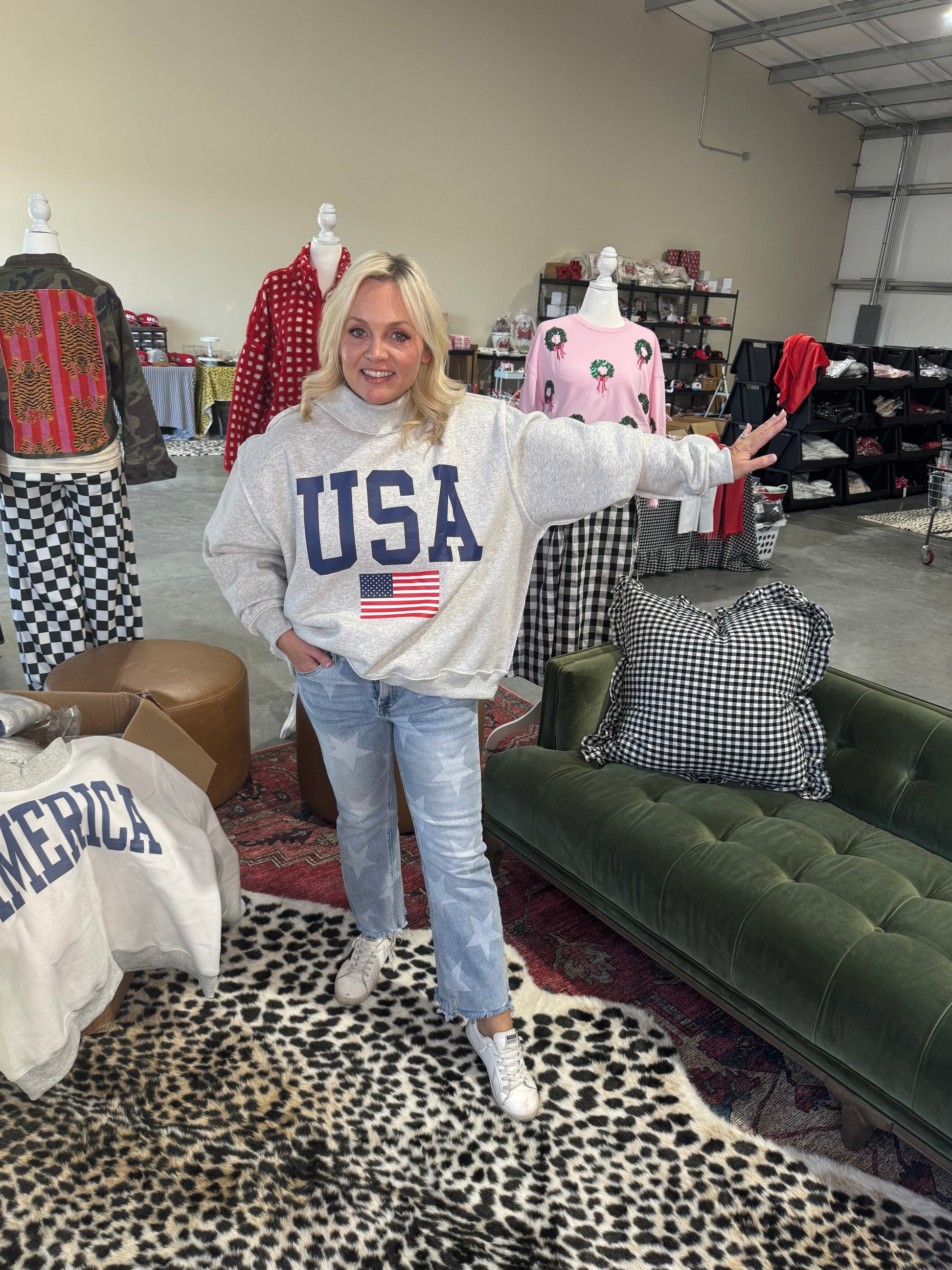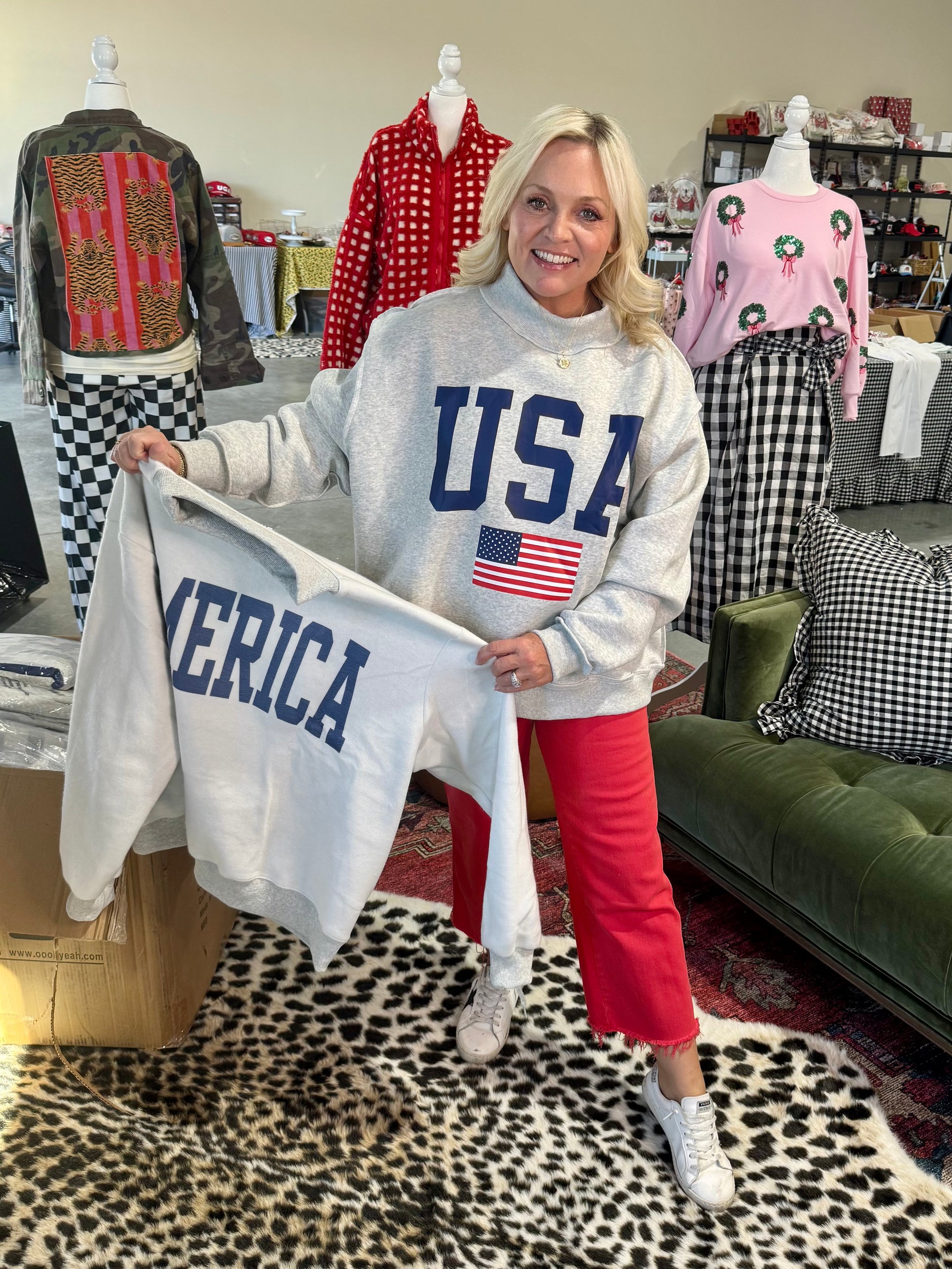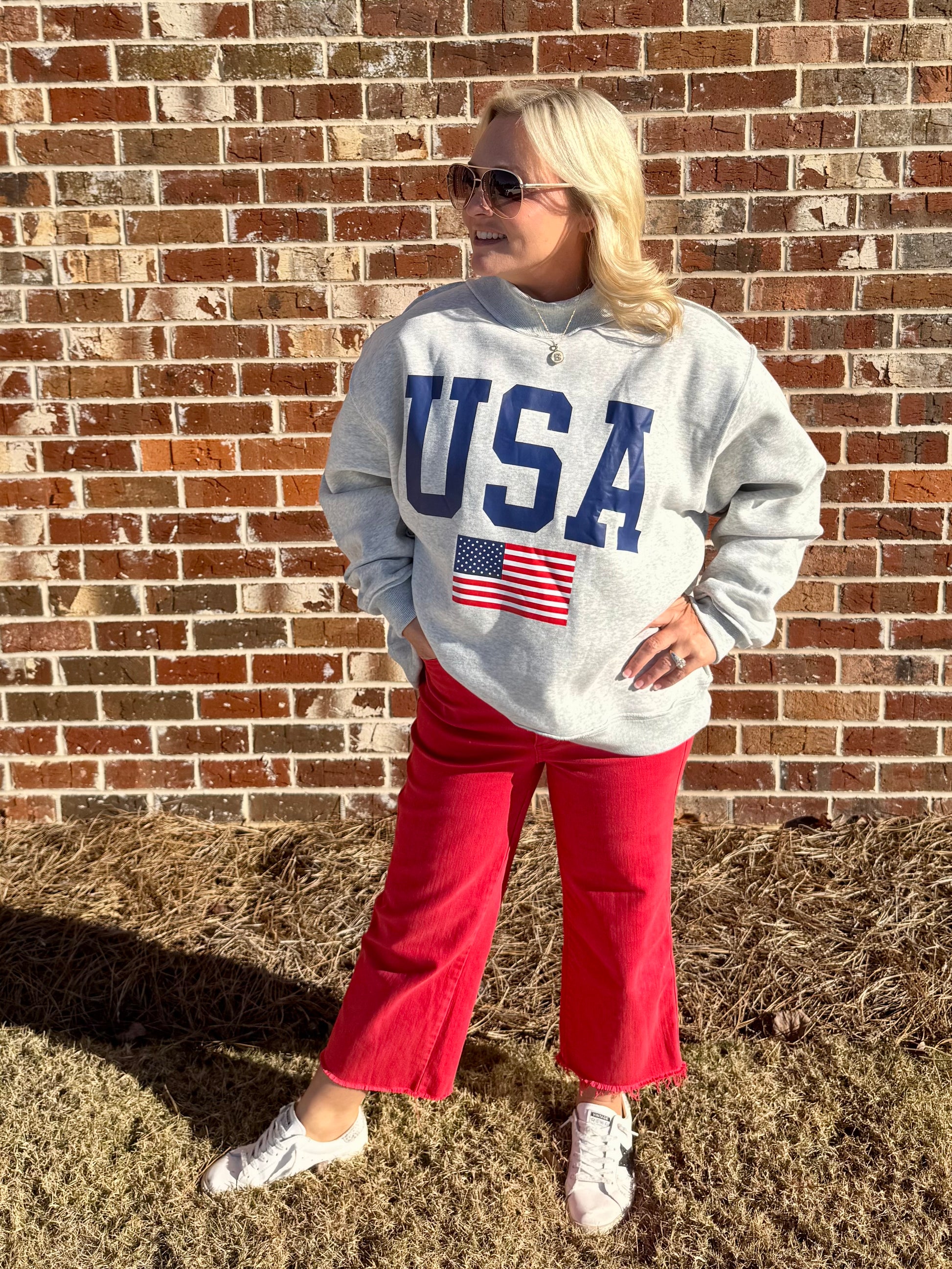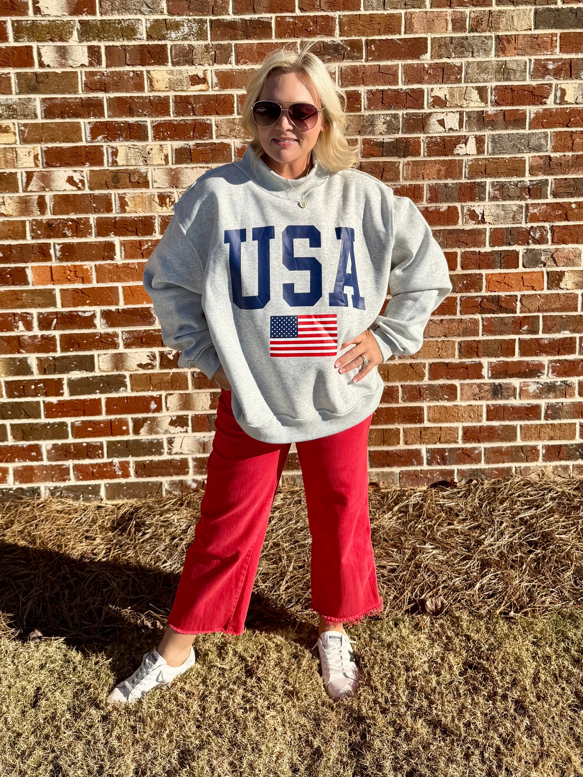 USA 🇺🇸 America reversible mock neck oversized gray