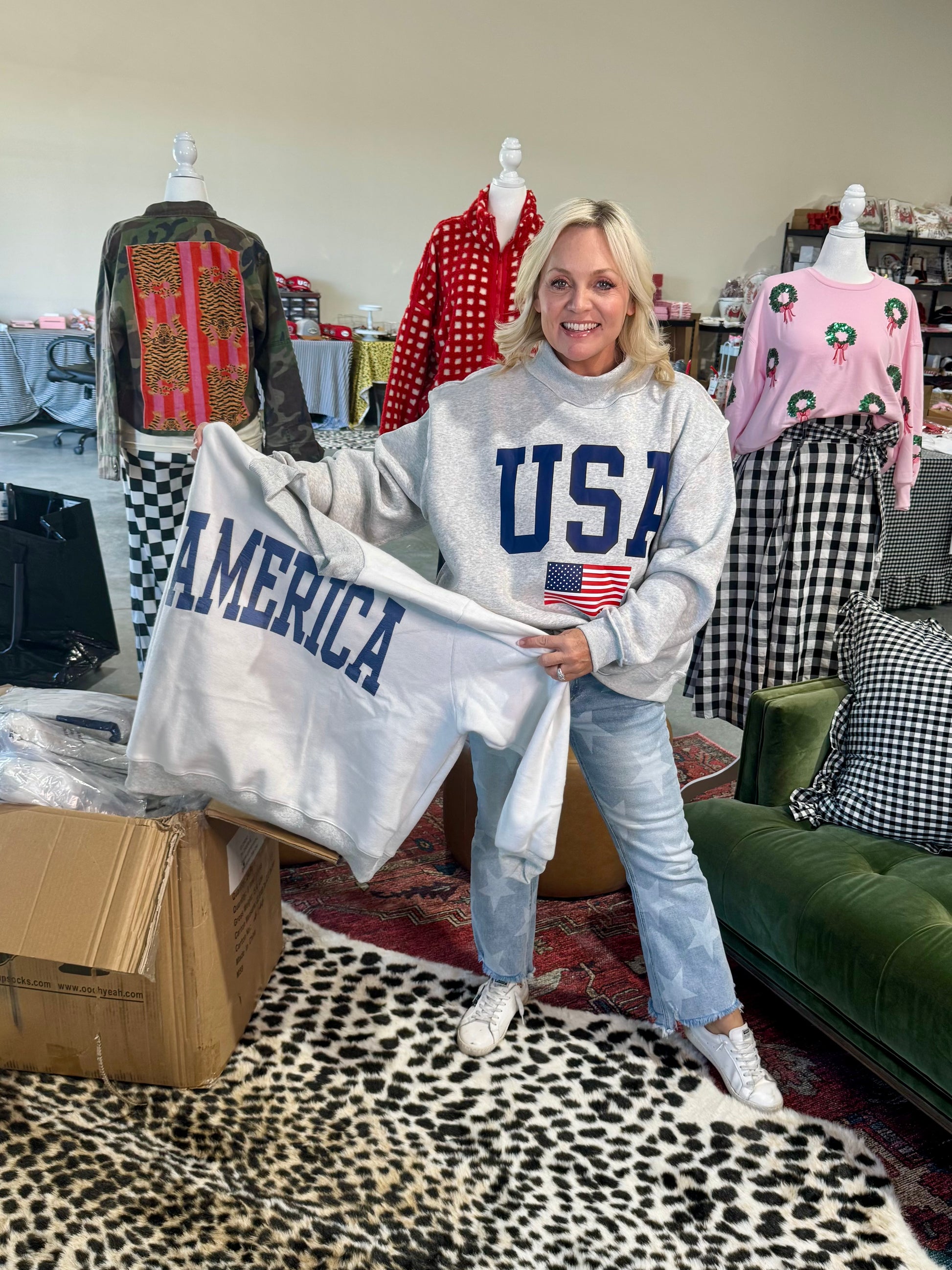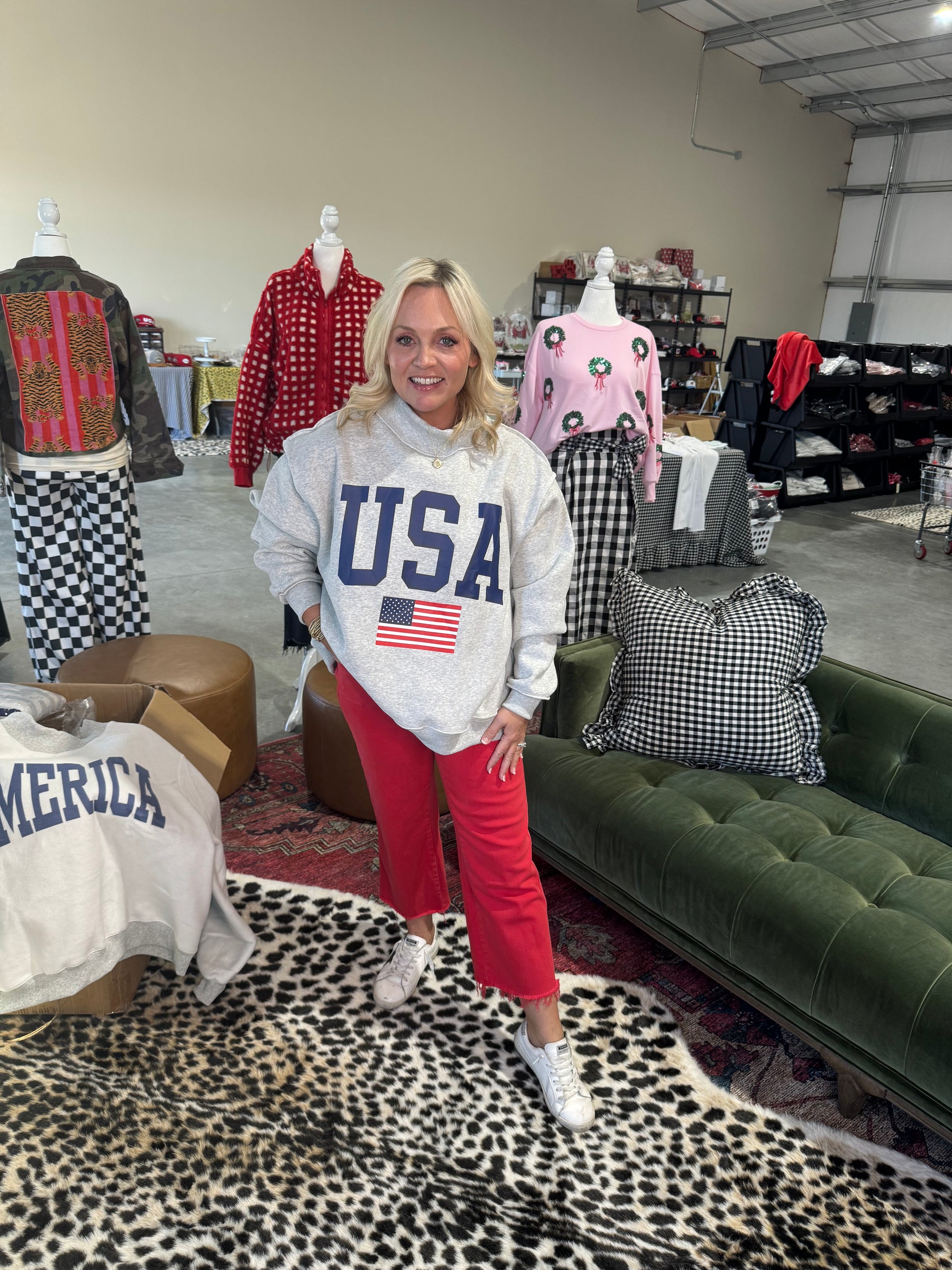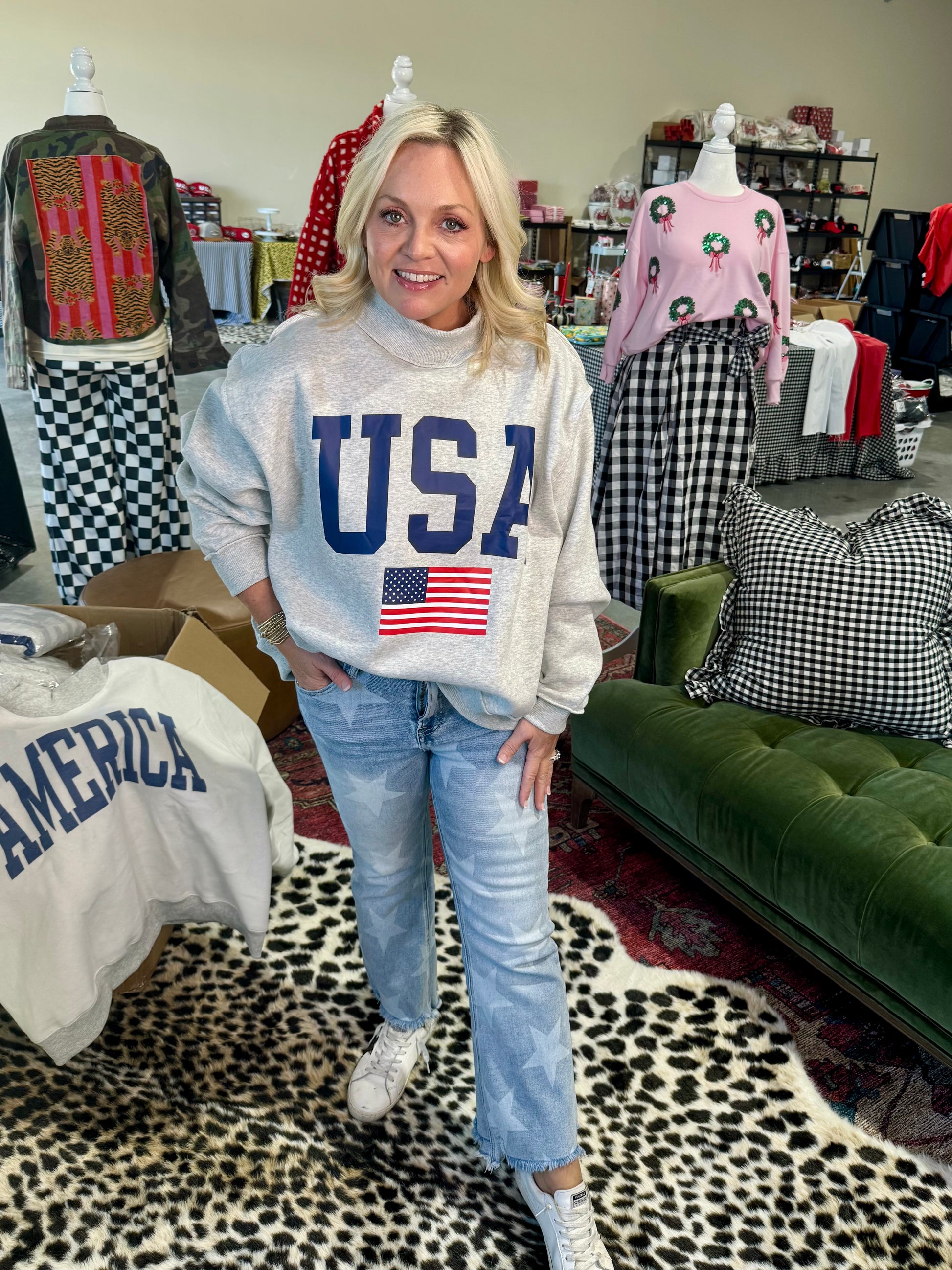 USA 🇺🇸 America reversible mock neck oversized gray