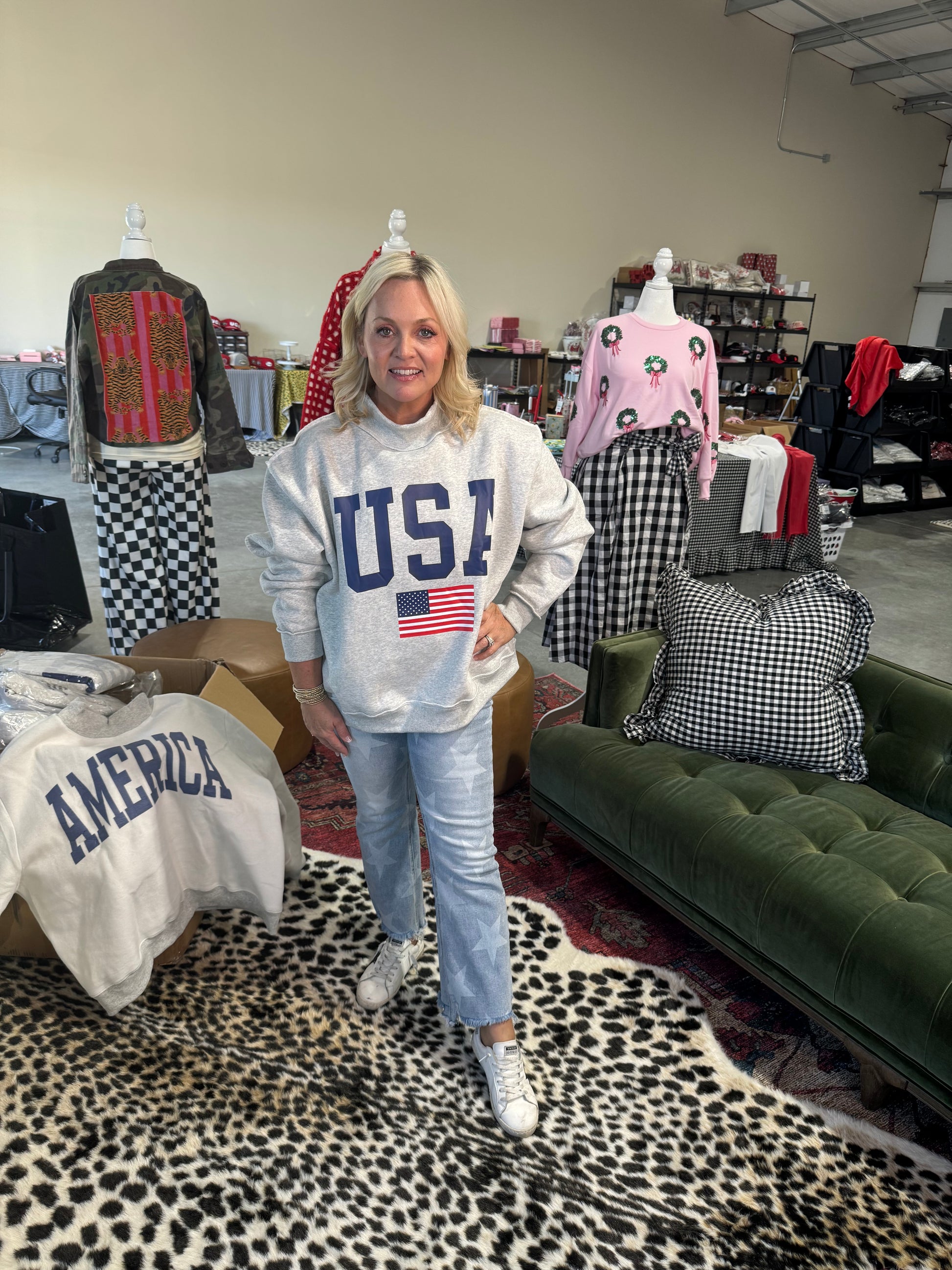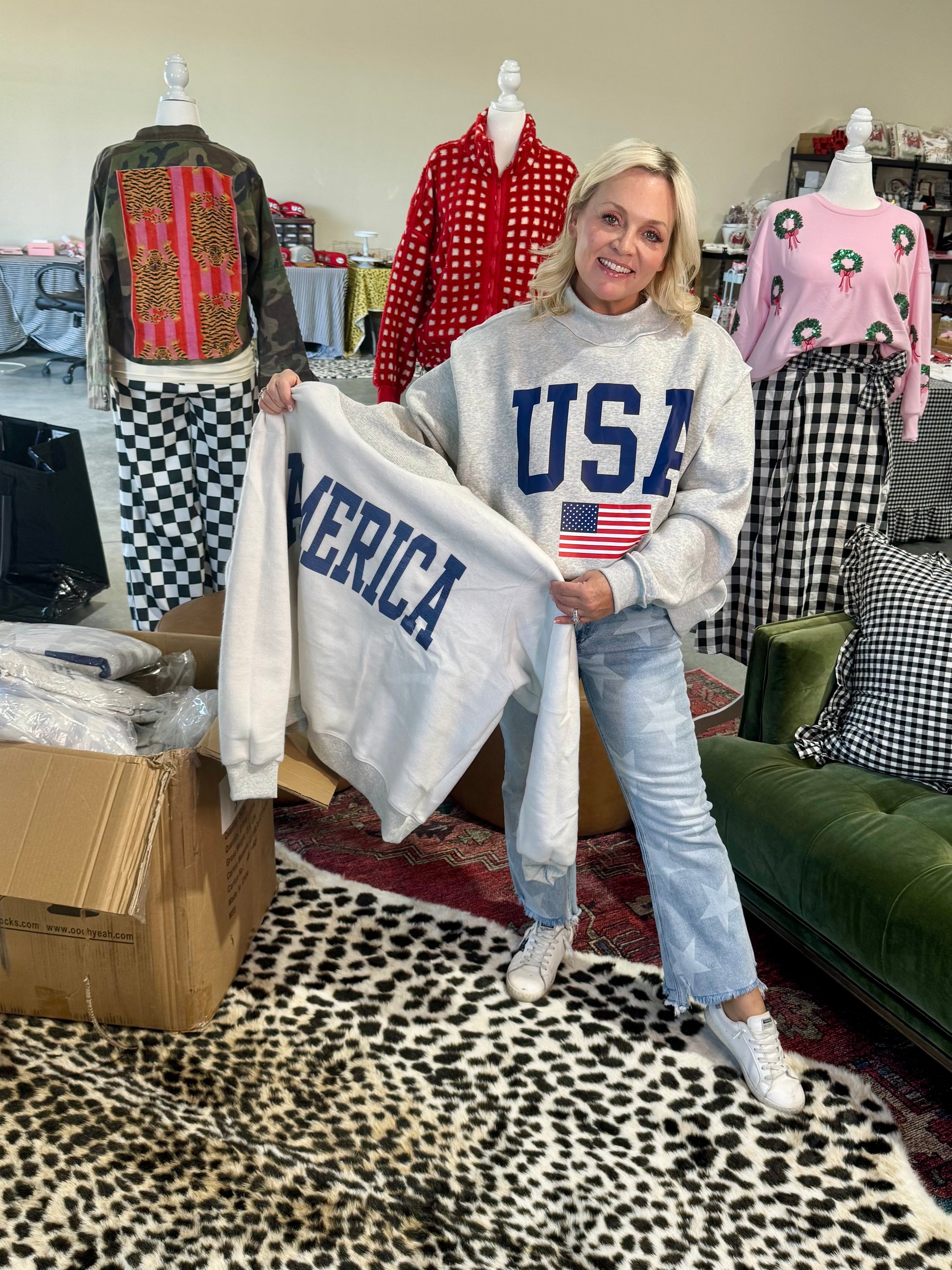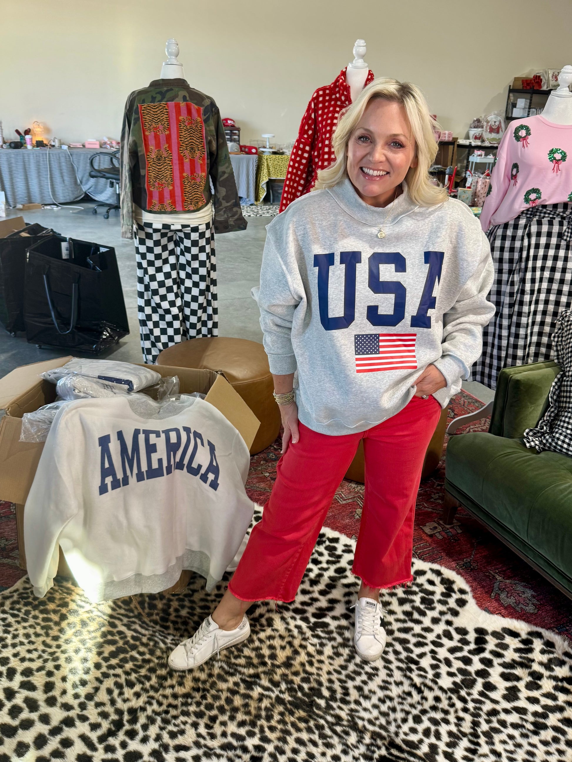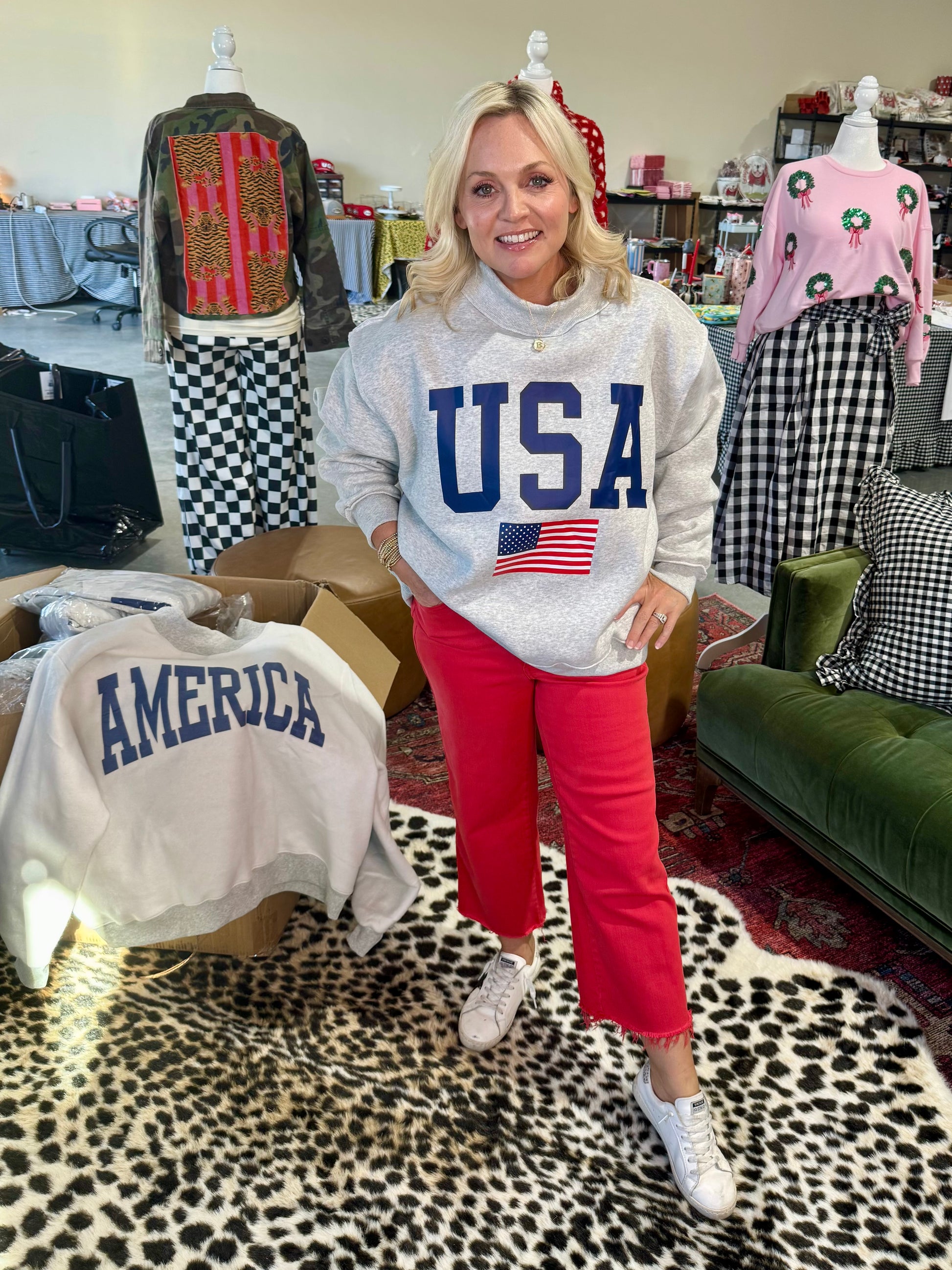 USA 🇺🇸 America reversible mock neck oversized gray